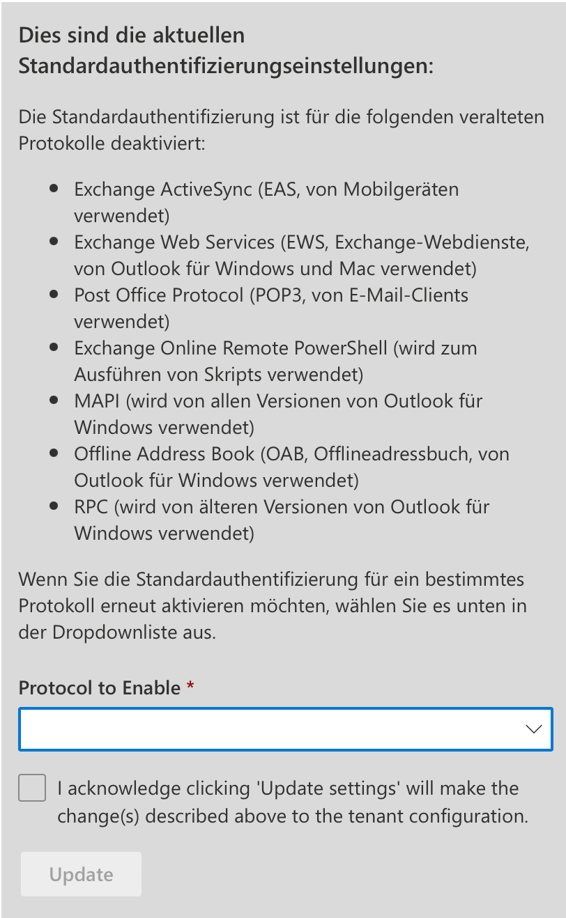 In den vergangenen Monaten hatte Microsoft bei allen Anwendern, die Basic Auth nicht nutzen, dieses Verfahren deaktiviert.