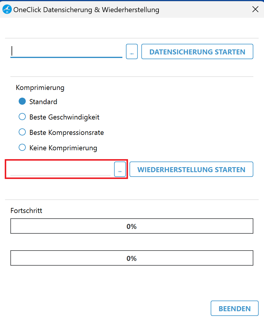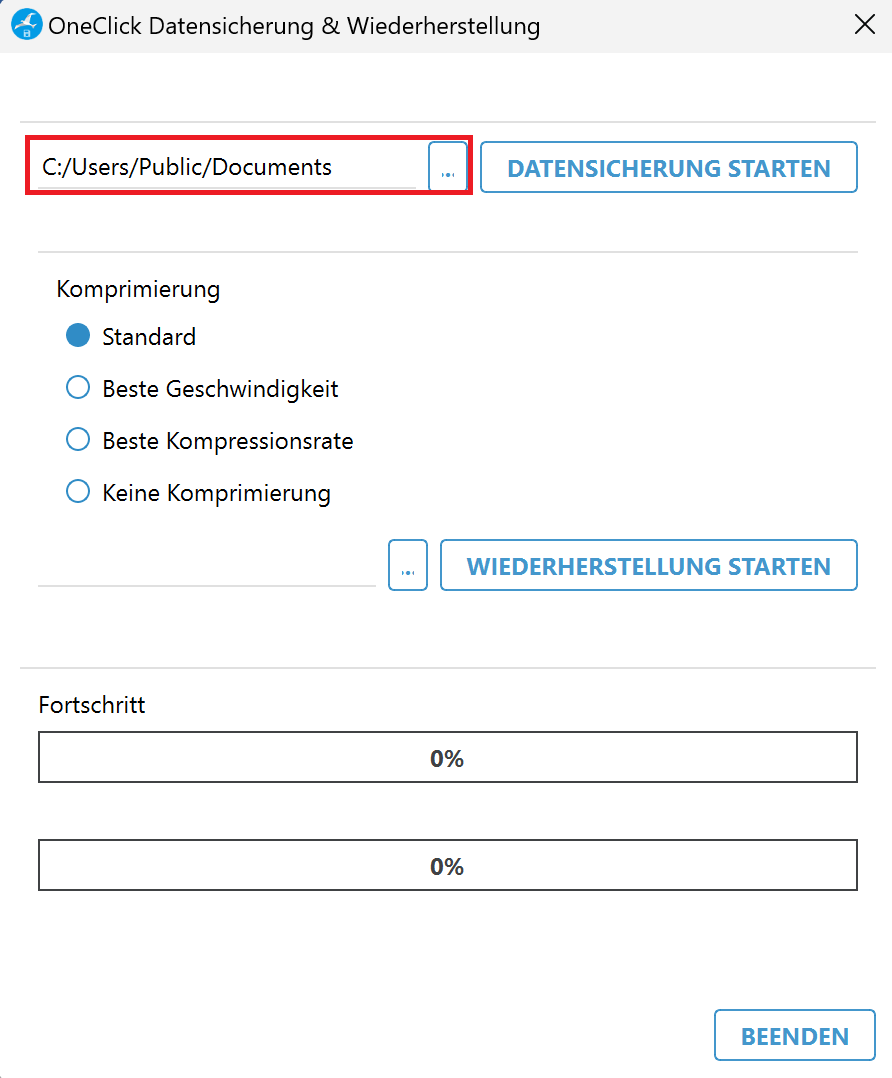 ![]() 4. Klicken Sie auf Datensicherung starten. |