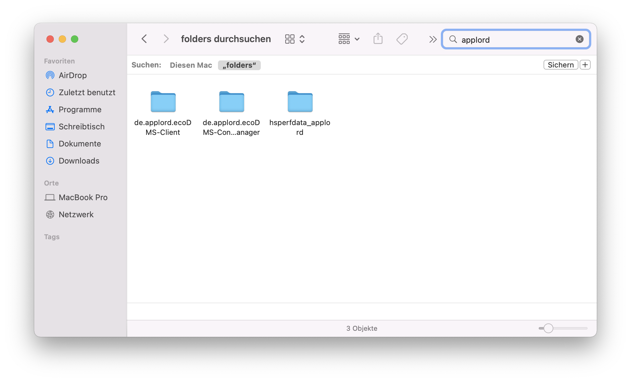 Geben Sie in der Suchleiste applord ein und klicken in der oberen Leiste auf folders.