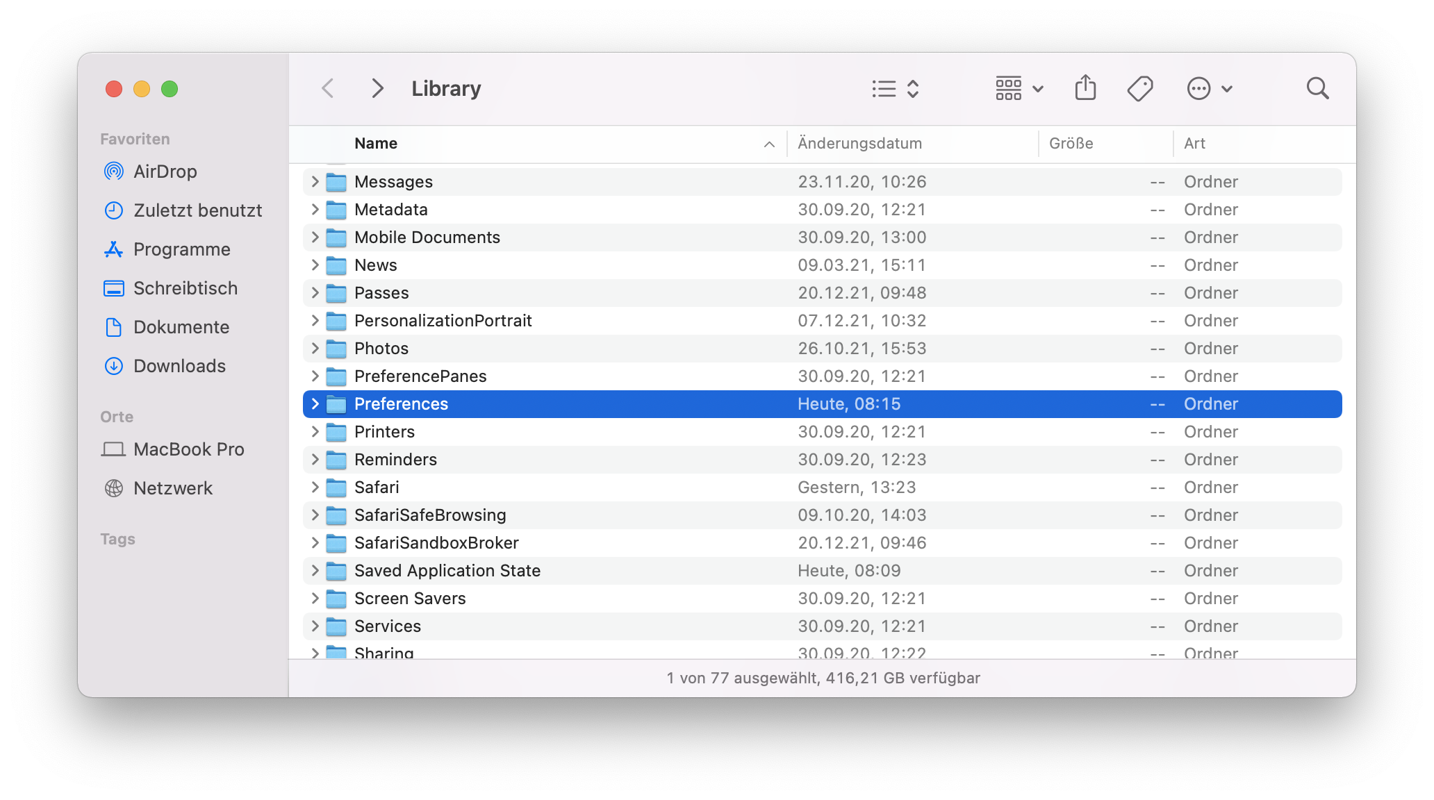 In der Library suchen Sie den Ordner Preferences und öffnen Sie diesen.