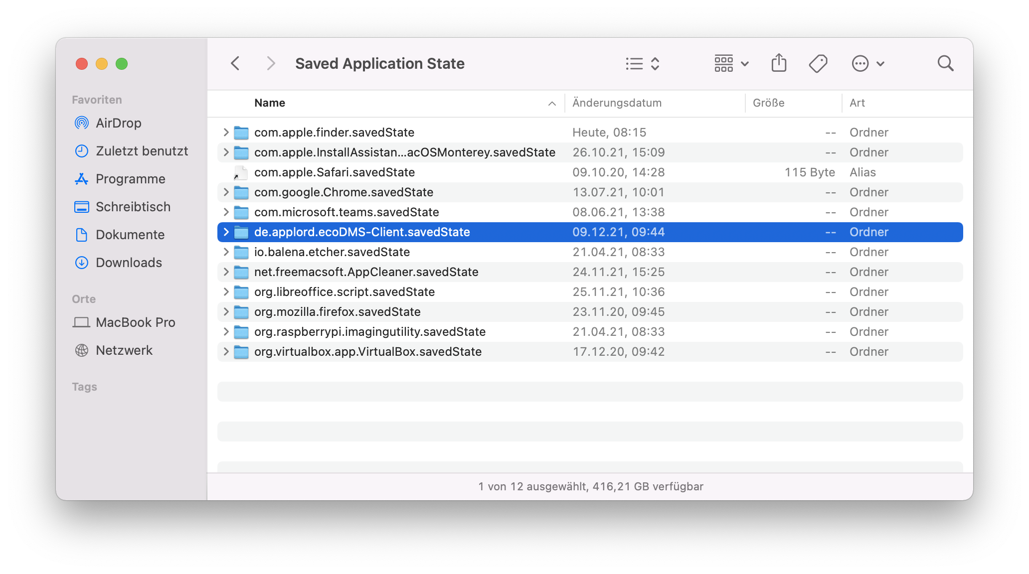 Gehen Sie nun eine Ordnerebene zurück und öffnen Sie den Ordner Saved Application State.