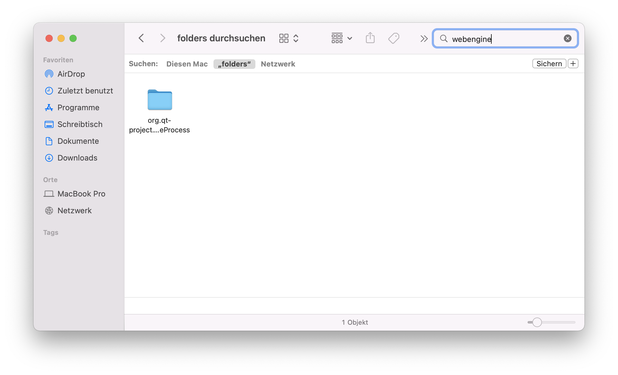Geben Sie nun in der Suchleiste webengine ein und verschieben Sie die gefundenen Ordner in den Papierkorb: