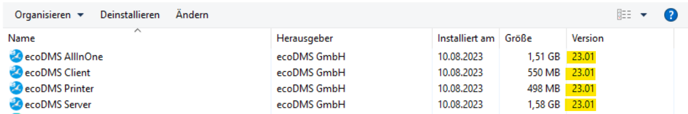 Damit ecoDMS genutzt werden kann müssen alle Komponenten - der ecoDMS Server, der ecoDMS Drucker und der ecoDMS Client - auf derselben Version laufen.