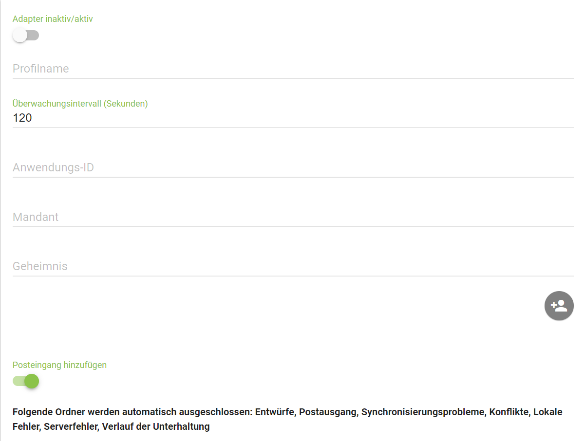 Wurde der Schieber Posteingang hinzufügen aktiviert wird nach der Auswahl des Postfachs automatisch der Posteingangsordner zum Mail-Abruf hinzugefügt.
