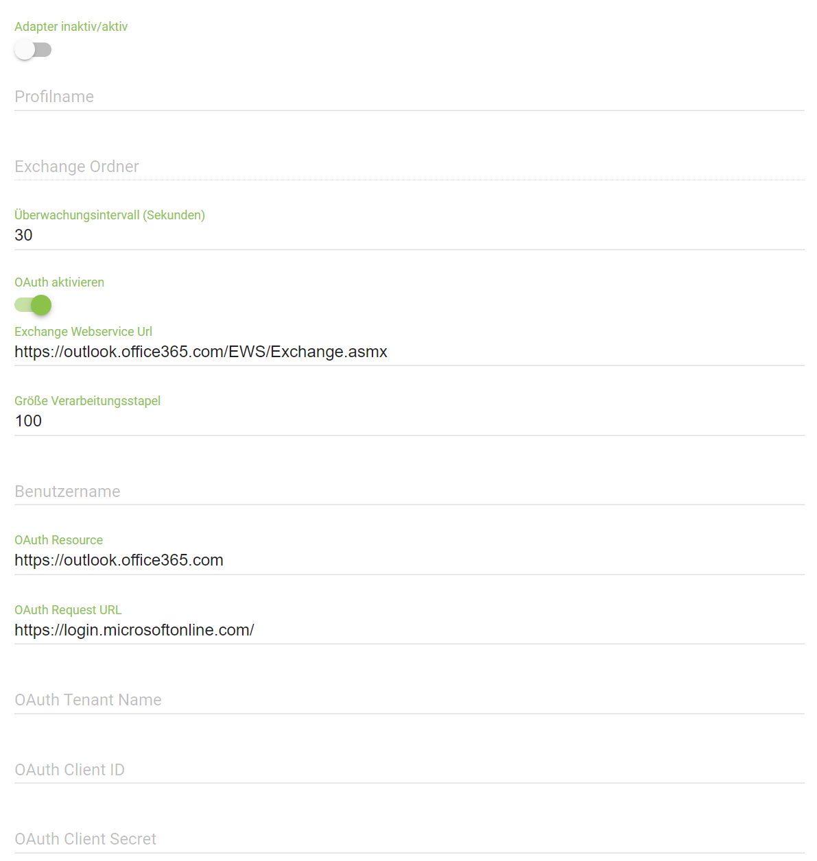 Einrichtung eines Office 365 (Microsoft Graph) Adapter