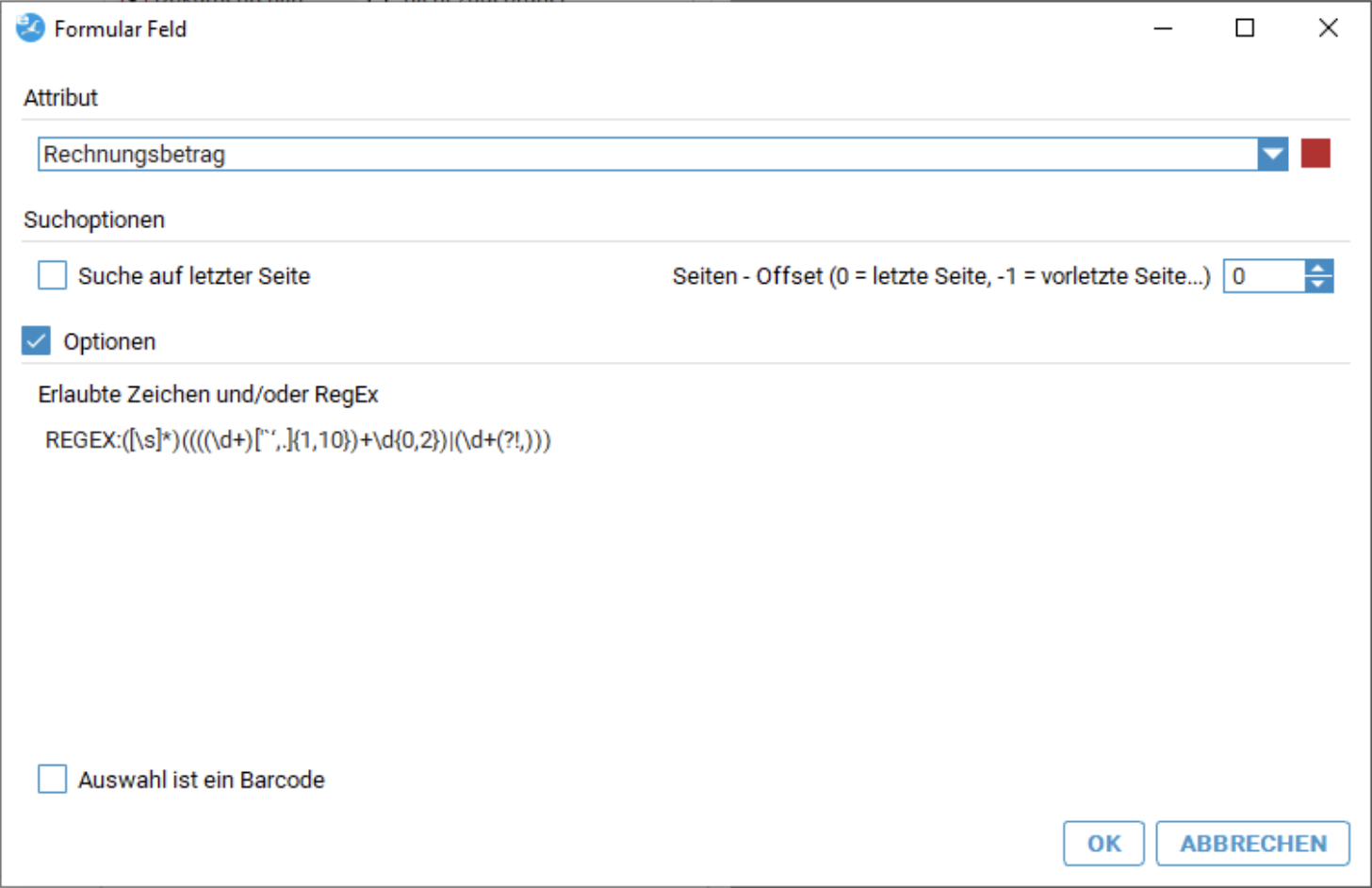 Um die Werte mit diesem Trennzeichen per Formularvorlage zu übernehmen, muss in den Optionen für dieses Feld folgendes eingestellt sein: