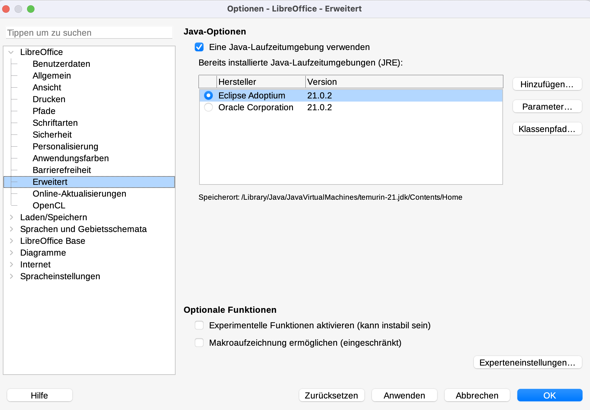 macOS Anleitung: Java Umgebung in LibreOffice ändern