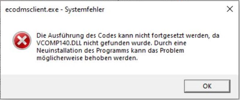 Offline Export - ecoDMS Client startet nicht (vcomp140.dll)