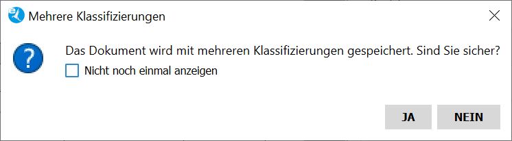 Bei der Archivierung von Mehrfachklassifizierungen erscheint ein Hinweis, den man dauerhaft ausblenden kann.
