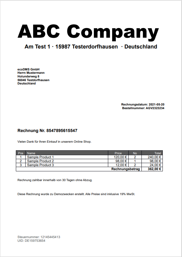 Möchten Sie eine Rechnungsnummer auszulesen gehen Sie wie folgt vor.