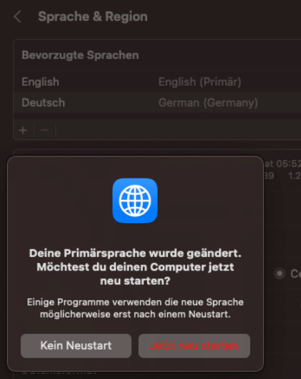 - Wechseln Sie in die Systemeinstellungen zu Allgemein und dort zum Punkt Sprache und Region.