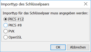 Werkzeuge - Schlüsselpaar importieren - PKCS #12 auswählen