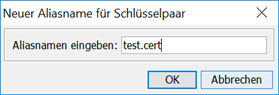 Aliasnamen eingeben - muss später in ecoDMS identisch mit Zertifikat Alias sein (unter Einstellungen - Web/Mobil/API)