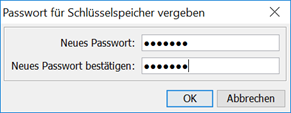 Passwort für Schlüsselspeicher vergeben (identisch mit Schlüsselbund Passwort)