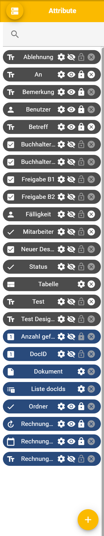 Attribute werden wie folgt angelegt/bearbeitet. Das Symbol des jeweiligen Attributs entspricht dem ausgewählten Attributtyp: