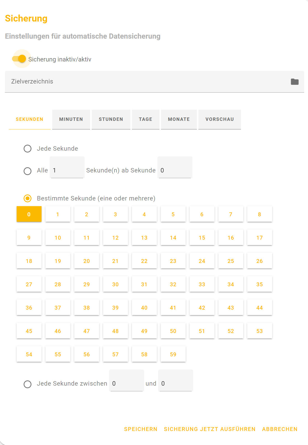 - Sicherung jetzt erstellen: Mittels dieser Schaltfläche wird die Datensicherung direkt erstellet und in das ausgewählte Zielverzeichnis abgelegt