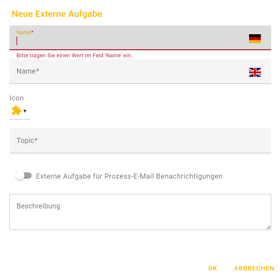 Name: Hinterlegen Sie hier den Namen für die externe Aufgabe