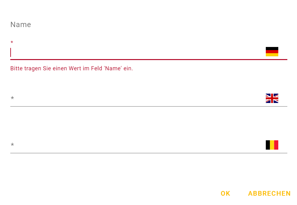 Tragen Sie hier den Namen des Eintrags ein. Der deutschsprachige Name wird analog in die Fremdsprachenfelder übertragen und kann dort jederzeit geändert werden. Mittels der Schaltfläche