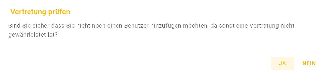 Bestätigen Sie Ihre Angaben mittels der Schaltfläche Erstellen. Sollten Sie der Rolle nur einen Benutzer zugewiesen haben, erhalten Sie eine entsprechenden Hinweismeldung die mit Ja/Nein quittiert werden muss.